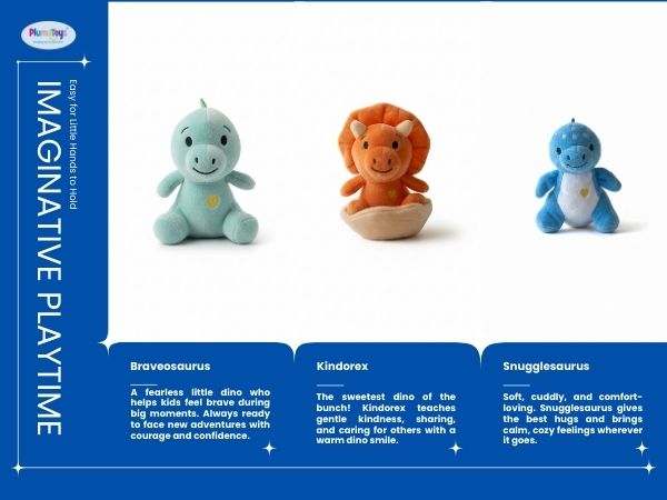- π§Έ Gentle Comfort for Little Ones β These plush dinos are made with baby-safe, ultra-soft materials that offer cuddly companionship and emotional comfort during quiet time or naps.