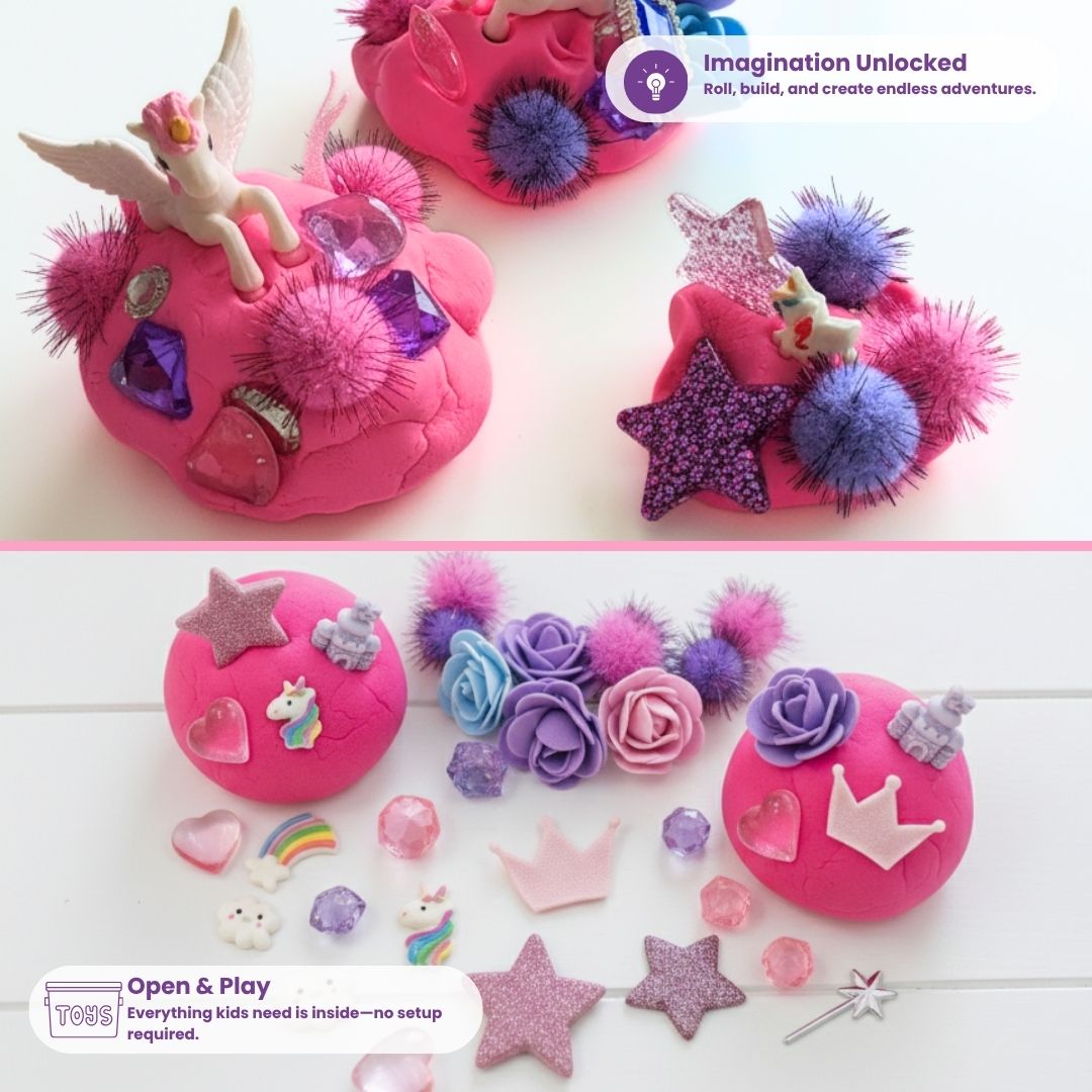 - Hours of Enchanted Fun: Each jar is packed with a generous portion of our vibrant, sparkling pink sensory dough. Kids will love discovering the included assortment of unicorn-themed charms, shimmering gems, and rainbow beads to create their own magical wonderland.
