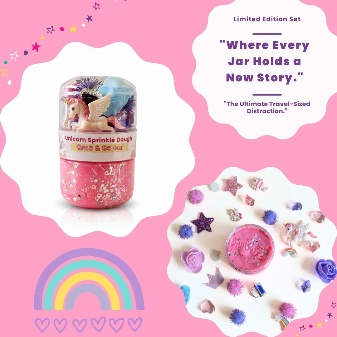 Unicorn Sensory Dough Jar Kit for Kids - Magical Activity with Mythical Charms & Sparkles - Travel Toy & Party Favor (Unicorn Sprinkle)